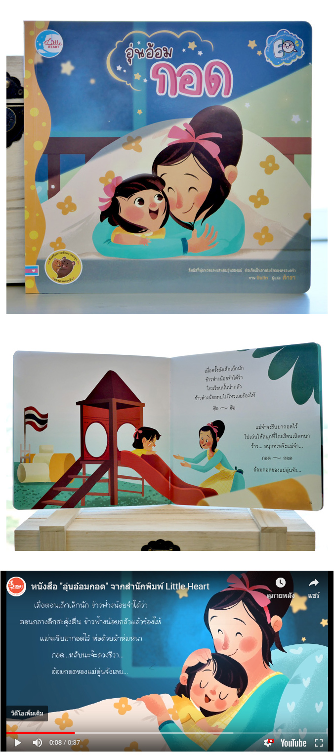 ลูกน้อยจะรับรู้ได้ว่าเค้าจะไม่รู้สึกโดดเดี่ยวและกล้าที่จะเผชิญกับเรื่องราวที่จะเกิดขึ้นด้วยสัมผัสรักจากอ้อมกอดที่อบอุ่น ก่อเกิดเป็นสายใยรักและความ ผูกพันที่อบอุ่นและจะ ประทับอยู่ในใจส่วนลึกของเด็ก เหมาะสำหรับให้คุณแม่คุณพ่ออ่านให้ฟัง อย่างสนุกสนานกันใน ทุกวัน