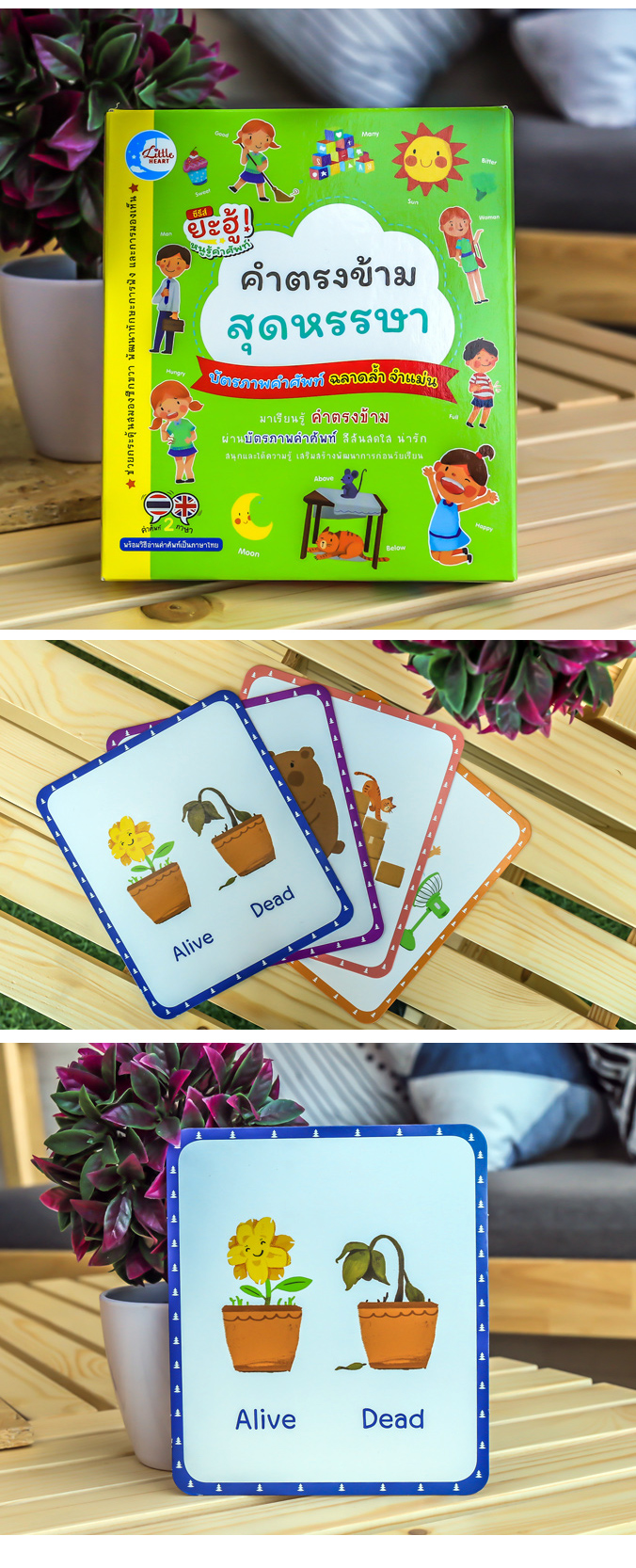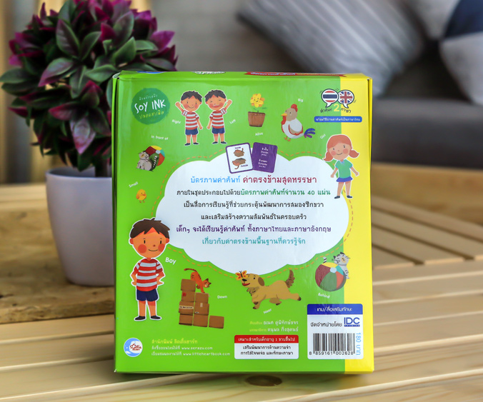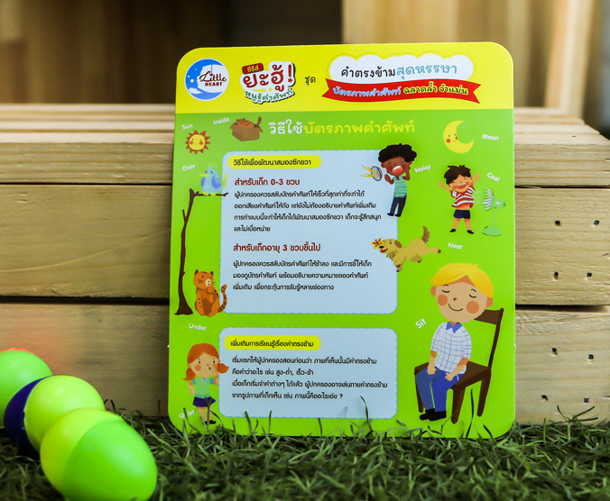 เป็นสื่อการเรียนรู้ที่ช่วยกระตุ้นพัฒนาการสมองซีกขวา และเสริมสร้างความสัมพันธ์ในครอบครัว เด็กๆ จะได้เรียนรู้คำศัพท์ ทั้งภาษาไทยและภาษาอังกฤษ เกี่ยวกับคำตรงข้ามพื้นฐานที่ควรรู้จัก