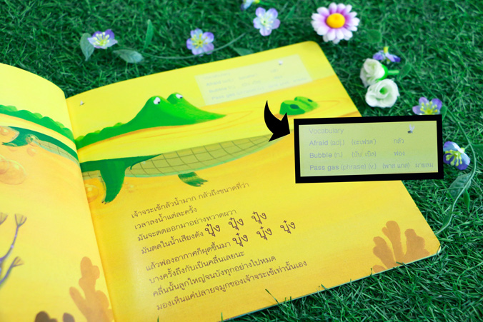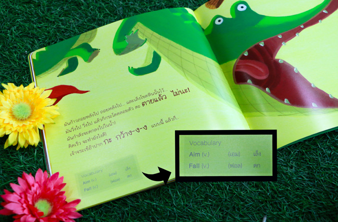 4.สอดแทรกคำศัพท์ภาษาอังกฤษที่น่ารู้ภายในเล่ม ซึ่งจะช่วยเพิ่มคลังคำศัพท์ของลูกน้อยให้มีมากยิ่งขึ้น