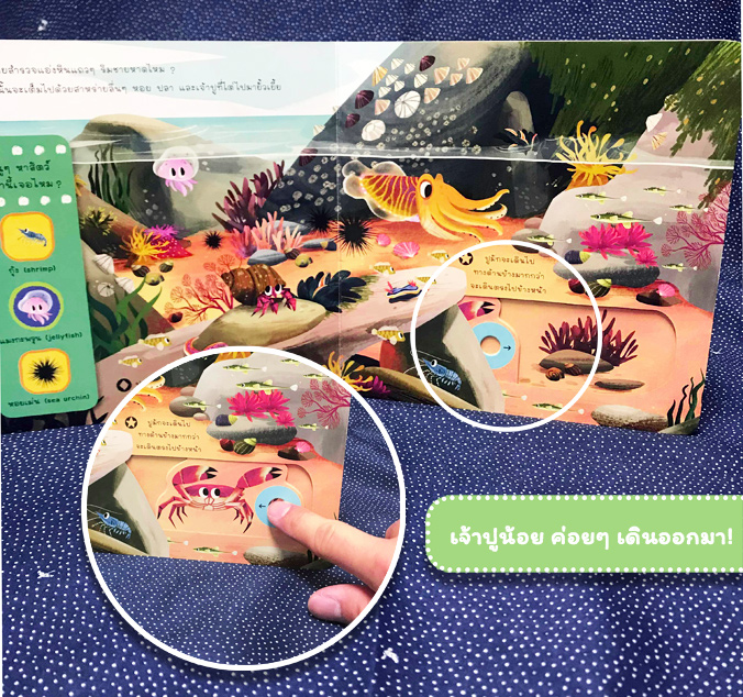 1. เป็นหนังสือแบบมีกลไกดึง หมุน ดัน เลื่อน เพื่อให้เด็กๆ ได้ฝึกใช้กล้ามเนื้อมัดเล็ก และเพิ่มความสนุกสนานระหว่างเล่าเรื่อง
