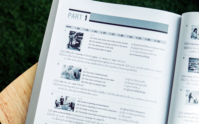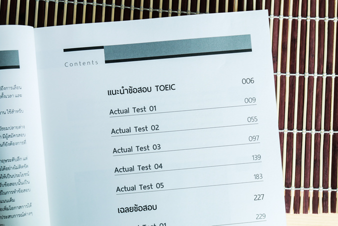 เพื่อความเข้าใจระดับความยากง่ายของข้อสอบ เราแบ่งข้อสอบออกเป็น 5 ชุด เสมือนการสอบแบบจำลองสนามจริง ในหนังสือ “ผ่าโจทย์ 1,000 ข้อสอบ TOEIC” ที่คุณกำลังอ่านตอนนี้ เรารวบรวมข้อสอบที่เหมือนจำลองข้อสอบ TOEIC ของจริงเอาไว้