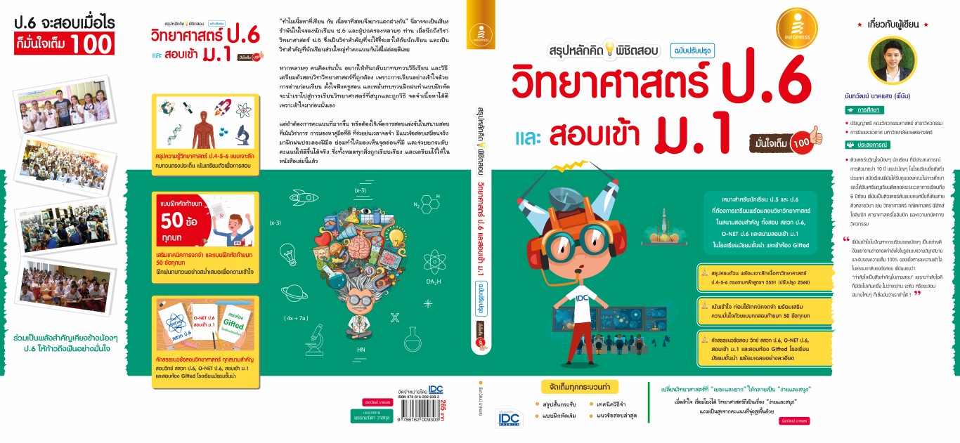 สรุปเนื้อหาวิชาวิทยาศาสตร์ ป.6 ด้วยความกระชับ เข้าใจง่าย สีสันสดใส เพื่อให้นักเรียนป.6 ทบทวนได้อย่างรวดเร็ว พร้อมแบบฝึกหัดในแต่ละบท ปิดท้ายด้วยแนวข้อสอบที่ นักเรียนต้องฝึกฝนให้ครบถ้วนทั้ง O-NET ป.6, ข้อสอบแข่งขันวิทย์ สสวท ป.6, แนวข้อสอบเข้า ม.1 และแนวข้อสอบเข้าโรงเรียนจุฬาาภรณ์ราชวิทยาลัย ซึ่งมาพร้อมกับการเฉลยอย่างละเอียด นักเรียน ป.6 สามารถฝึกฝนด้วยตนเองได้อย่างครบถ้วนในเล่มเดียว นอกจากนี้ยังเหมาะกับนักเรียนชั้น ป.4-5 ที่ต้องการเตรียมตัวเพื่อการแข่งขันความเป็นเลิศทางวิชาการ