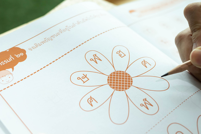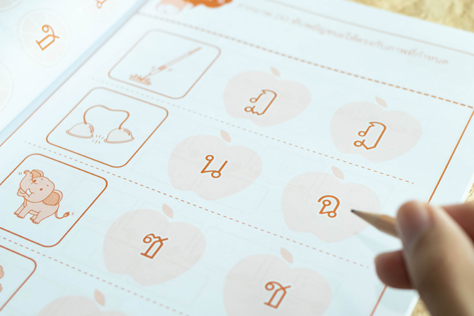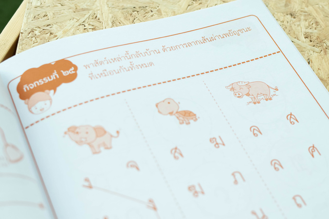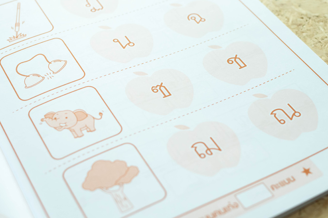 จากการตระหนักถึงความสำคัญนี้ เราจึงได้พัฒนาแบบฝึกให้เหมาะสมกับวัย เข้าใจง่าย และส่งเสริมให้เด็กได้เรียนรู้ภาษาไทยจากเรื่องราวรอบตัว ผ่านหัวข้อสำคัญ อาทิ พยัญชนะและสระไทย อีกทั้งยังได้เรียนรู้คำศัพท์พื้นฐาน ชุดที่ ๑-๘ จำนวน ๘๐ คำ โดยเนื้อหานั้นสอดคล้องกับหลักสูตรการศึกษาปฐมวัย พ.ศ. ๒๕๖๐