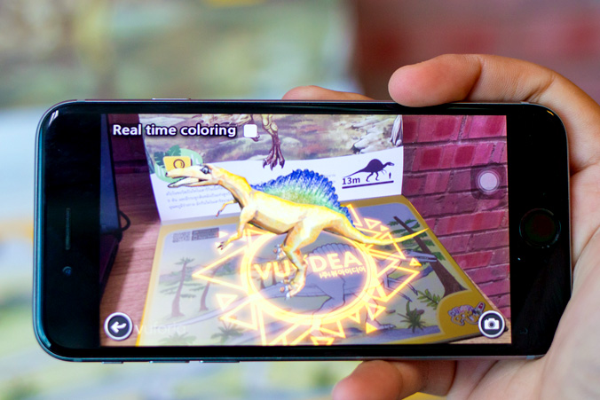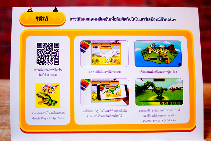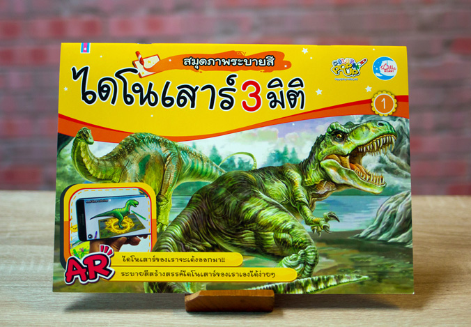 สมุดภาพระบายสีไดโนเสาร์แสนสนุกที่มาพร้อมกับแอพพลิเคชั่นเทคโนโลยีภาพเสมือนจริง เพียงนำแอพพลิเคชั่นส่องไปที่ไดโนเสาร์ซึ่งระบายสีเอาไว้เรียบร้อยแล้ว ไดโนเสาร์เสมือนจริงจะปรากฏขึ้นมาภายในหน้าจอสมาร์ทโฟนทันที