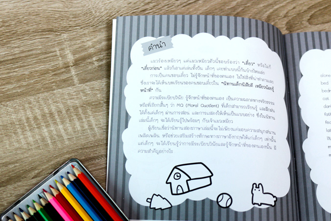 นอกจากนี้หนังสือยังใช้เป็นสมุดภาพระบายสี ช่วยเพิ่มทักษะการใช้มือจับระบายสี ส่งเสริมจินตนาการและความสามารถทางศิลปะให้กับเด็กๆ เหมาะกับพ่อแม่ผู้ปกครองและคุณครูที่ต้องการสื่อการสอนคุณธรรม สอนวิชาภาษาอังกฤษ สอนวิชาภาษาไทย