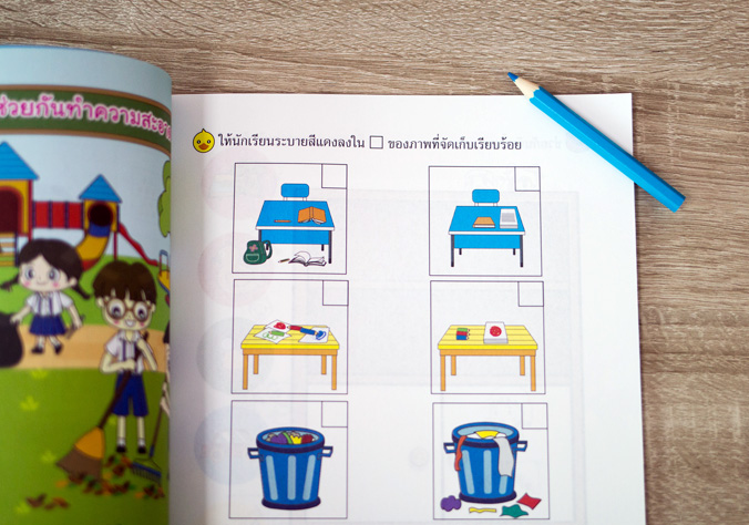 ฝึกการใช้กล้ามเนื้อใหญ่-เล็ก ทำท่าทางประกอบ กระโดดโลดเต้น ออกกำลังกายตามจินตนาการ มีอารมณ์ จิตใจร่าเริงอย่างสนุกสนาน และการใช้กล้ามเนื้อมัดเล็ก นิ้วมือ ขีด เขียน วาด ระบายสี ซึ่งเป็นการพัฒนาการอ่าน-เขียน ลักษณะหนังสือเป็นภาพสีและขาวดำ ซึ่งภาพเป็นสีนั้น เหมาะกับเด็กวัยนี้มาก
