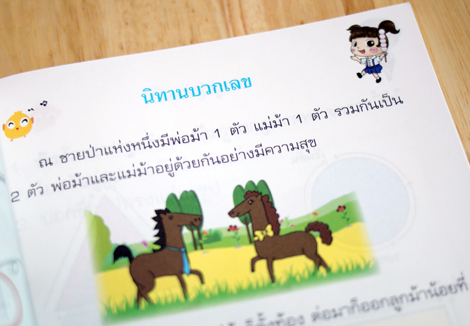 แบบเรียนเลขอนุบาลที่มุ่งให้เป็นแบบเรียนที่สนุก ง่าย และให้ความรู้ความเข้าใจที่ถูกต้อง เน้นทักษะการนับจำนวน 1-5 การสังเกต การรู้ค่า การเปรียบเทียบจำนวนที่เท่ากัน มากกว่า น้อยกว่า รวมทั้งการอ่าน เขียน บวกและลบเลขได้ด้วยความเข้าใจ