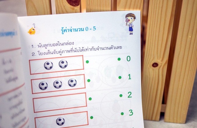 โดยเน้นทักษะการนับจำนวน 1-5 การสังเกต รู้ค่า เปรียบเทียบจำนวนที่เท่ากัน มากกว่า น้อยกว่า รวมทั้งการอ่าน-เขียน บวก-ลบเลขได้ด้วยความเข้าใจ