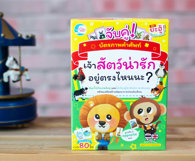 บัตรภาพคำศัพท์ จับคู่ Where is the animal? เจ้าสัตว์น่ารักอยู่ตรงไหนนะ? เด็กๆจะได้เรียนรู้จักตำแหน่งต่างๆจากสัตว์หลากหลายชนิด เป็นก้าวแรกของการเรียนรู้ที่ บัตรภาพคำศัพท์จับคู่จะช่วยพัฒนาทักษะสมองทั้งซึกซ้ายและขวาอย่างสมดุล ทำให้มีความพร้อมรอบด้านในการพัฒนาทักษะการเรียนรู้ต่างๆของเด็กได้เป็นอย่างดีและยังเสริมสร้างความสัมพันธ์ในครอบครัว เด็กๆจะได้เรียนรู้คำศัพท์ ทั้งภาษาไทย และภาษาอังกฤษ สนุกกับการจับคู่บัตรภาพคำศัพท์พร้อมกับโปสเตอร์สีสันใส น่ารัก น่าเรียนรู้