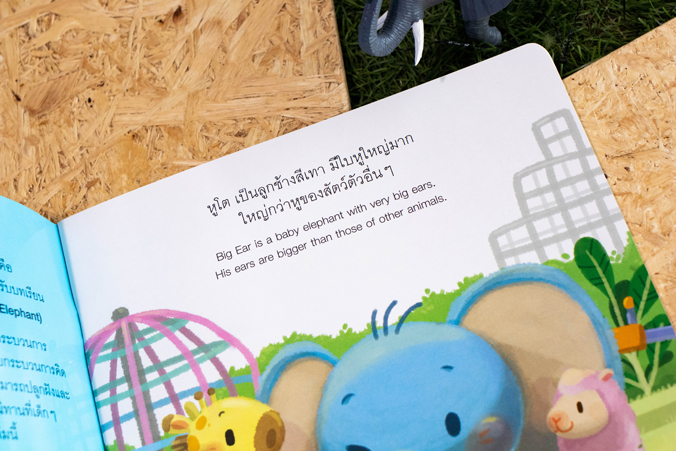 2.เป็นนิทานสองภาษา ไทย- อังกฤษ เป็นคำศัพท์พื้นฐานที่เข้าใจง่าย เด็กๆได้เรียนรู้ภาษาอย่างมีความสุข