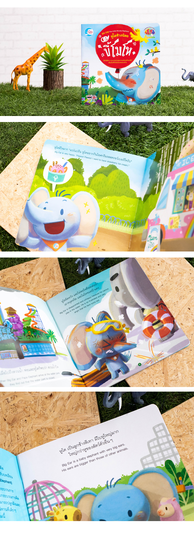 ของเจ้าหูโตช้างน้อยขี้โมโห ที่จะทำให้เด็กๆได้เรียนรู้และเข้าใจถึงอารมณ์ของตัวเองในเวลาที่อะไรๆ ก็ไม่ได้เป็นไปอย่างที่ใจต้องการ เด็กๆจะรู้จักวิธีการควบคุมอารมณ์ของตนเอง