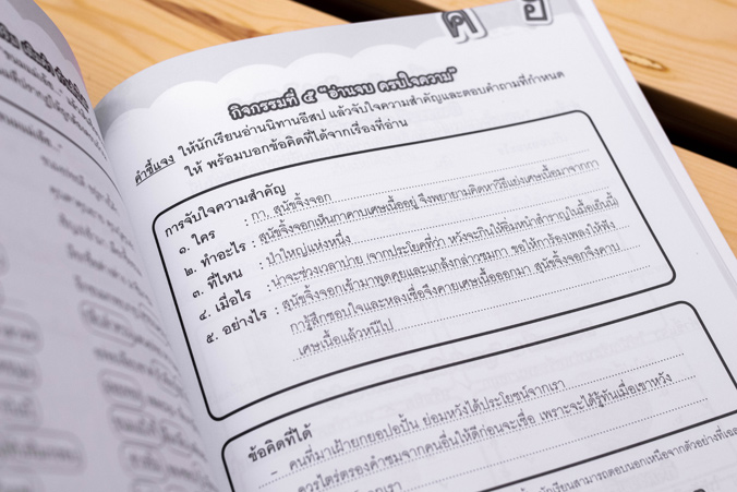 พัฒนาทักษะภาษาไทย ทั้งการฟัง การพูด การอ่าน การเขียน และการคิดวิเคราะห์ให้กับผู้เรียนด้วยแบบฝึกที่ครอบคลุมเนื้อหา และสรุปสาระสำคัญที่ช่วยให้ผู้เรียนเข้าใจได้ง่ายและแม่นยำมากขึ้น