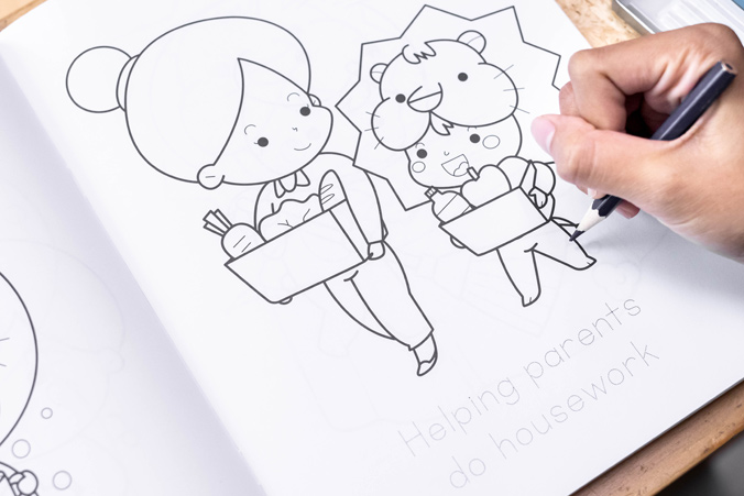 เหมาะกับการใช้เป็นสื่อที่ช่วยพูดคุยกับเด็กๆ ให้รู้จักการทำพฤติกรรมที่พึงประสงค์ซึ่งเป็นดีต่อพัฒนาการทางด้านสังคม นอกจากนี้กิจกรรมระบายสีก็ยังสนุกมากๆ อีกด้วยนะ