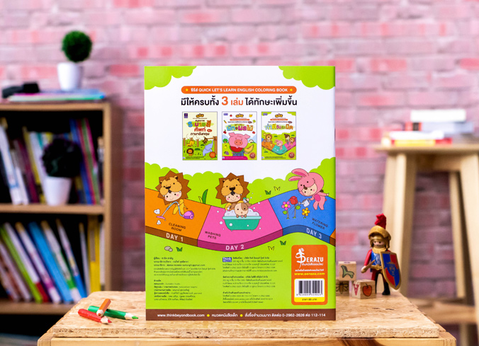 สมุดภาพระบายสีการ์ตูนน่ารักๆ พร้อมคำศัพท์และประโยคภาษาอังกฤษที่ช่วยให้เด็กๆ สนุกกับการเรียนรู้ภาษาแบบค่อยเป็นค่อยไปผ่านกิจกรรมระบายสี