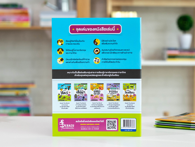 มีคำศัพท์น่าสนใจ แบบฝึกหัด รูปภาพ แถมฟรีสติกเกอร์ฝึกทักษะ และ QR CODE สำหรับ สแกนรับ Audio Files ออกเสียงภาษาอังกฤษ