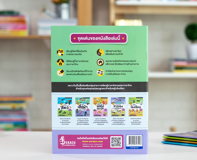 มีคำศัพท์น่าสนใจ แบบฝึกหัด รูปภาพ แถมฟรีสติกเกอร์ฝึกทักษะ และ QR CODE สำหรับ สแกนรับ Audio Files ออกเสียงภาษาอังกฤษ
