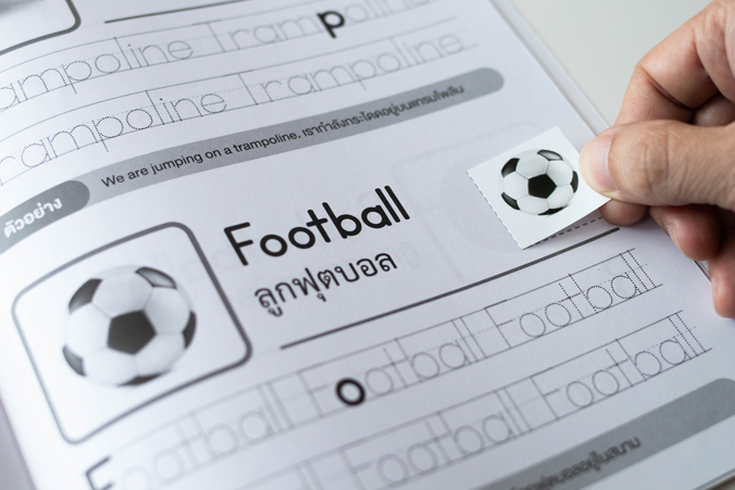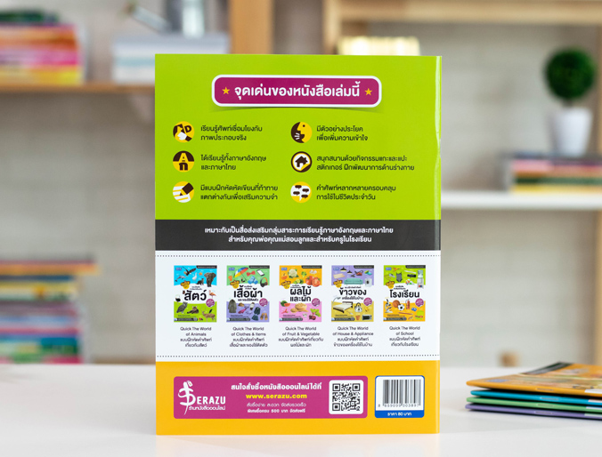 หนังสือแบบฝึกหัดคัดที่มีระดับความท้าทายง่าย-ยาก สำหรับการเรียนรู้คำศัพท์ภาษาอังกฤษ พร้อมคำแปลภาษาไทย มีรูปภาพ แถมฟรีสติกเกอร์ฝึกทักษะ และตัวอย่างการใช้คำต่างๆ ในประโยค เป็นสื่อส่งเสริมกลุ่มสาระการเรียนรู้ภาษาอังกฤษ ภาษาไทย และศิลปะ