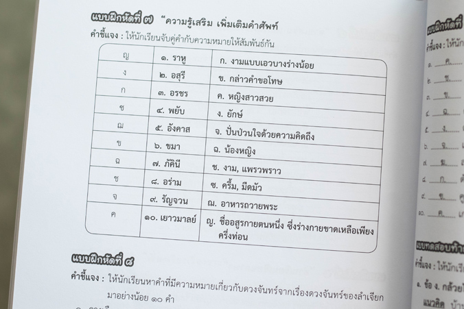 รวมแบบฝึกเพื่อใช้ในการพัฒนาศักยภาพทางด้านภาษา ให้รู้จักใช้ความคิดเชื่อมโยง และกระตุ้นความสนใจให้เด็กรู้จักศึกษาค้นคว้าด้วยตนเอง อีกทั้งส่งเสริมให้เด็กรักและอนุรักษ์วรรณคดีไทย
