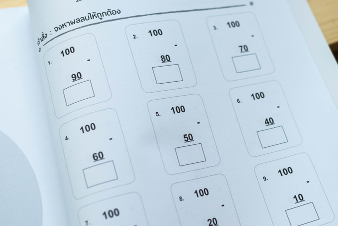 เลขสองจำนวนลบกัน (แนวตั้ง) ตัวตั้งไม่เกิน 100