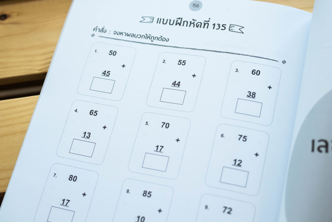 รวมแบบฝึกหัดเพื่อการฝึกคิดเลขในใจ ช่วยพัฒนาทักษะคณิตศาสตร์ให้เด็กสามารถคำนวณโจทย์ได้อย่างรวดเร็วและแม่นยำมากขึ้น เพิ่มประสิทธิภาพการคิดเลขในใจทั้งการบวกและการลบ ด้วยแบบฝึกถึง 1,500 ข้อ
