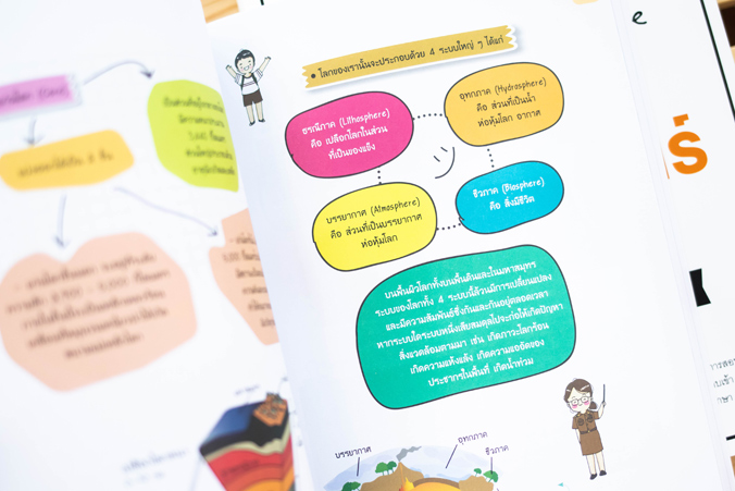 4 สีทั้งเล่ม สรุปชัดเจน ง่าย และสามารถเข้าใจได้อย่างรวดเร็ว ครบถ้วนสมบูรณ์ในทุกเนื้อหาสำคัญ พร้อมเนื้อหาสาระสำคัญเพื่อพิชิตคะแนนสอบ