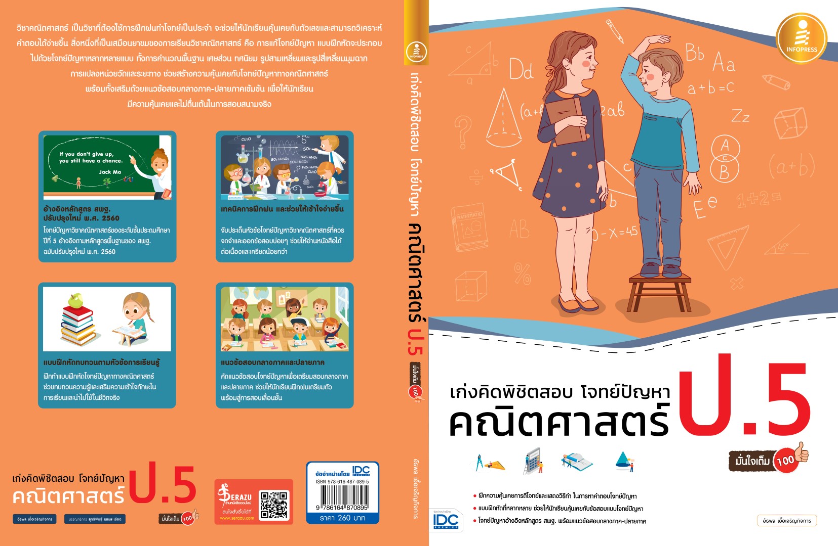 แบบฝึกหัดเน้นการวิเคราะห์และแสดงวิธีทำโจทย์ปัญหาทางวิชาคณิตศาสตร์ ป.5 โดยออกแบบเพื่อช่วยให้นักเรียนฝึกการวิเคราะห์โจทย์ปัญหา แบบฝึกหัดจะประกอบไปด้วยโจทย์ปัญหาหลากหลายแบบทั้งโจทย์ปัญหาแบบระคน และเศษส่วน จำนวนคละ ทศนิยม การแปลงหน่วยวัดและการชั่งตวงวัด ช่วยเสริมทักษะให้กับนักเรียนได้เป็นอย่างดี อีกทั้งเนื้อหาอ้างอิงตามหลักสูตรของ สพฐ. จึงสามารถใช้ร่วมกับหนังสือเรียนวิชาคณิตศาสตร์ได้ ท้ายเล่มยังเพิ่มเติมด้วยแนวข้อสอบกลางภาค-ปลายภาคเข้มข้นจำนวนทั้งหมด 100 ข้อ เพื่อให้นักเรียนเตรียมพร้อมกับการสอบทุกครั้งอย่างมั่นใจ