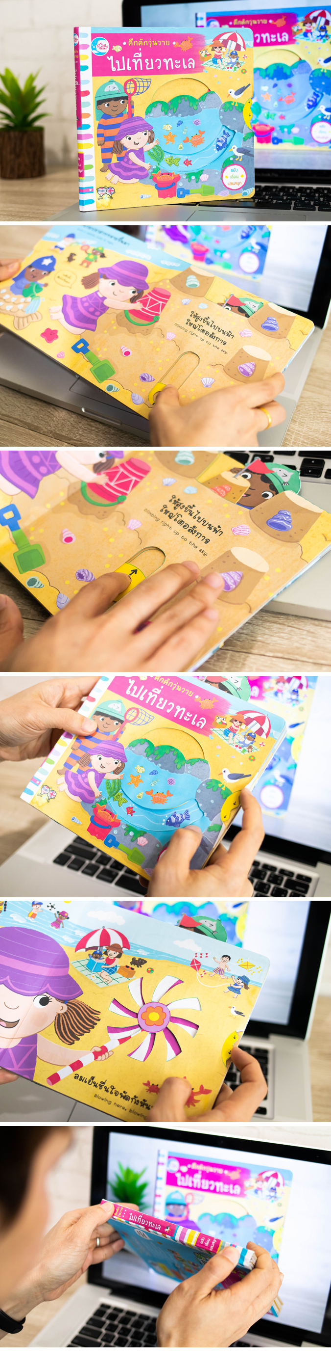 ไปเที่ยวทะเลมีเรื่องสนุกมากมาย ไม่ว่าจะเป็นการก่อปราสาททราย ไล่จับปูน้อย ลอยคอในทะเล มาเถอะมาสนุกไปกับกลไกดึง หมุน ดัน เลื่อน จับขยับได้อย่างน่าตื่นตาตื่นใจ