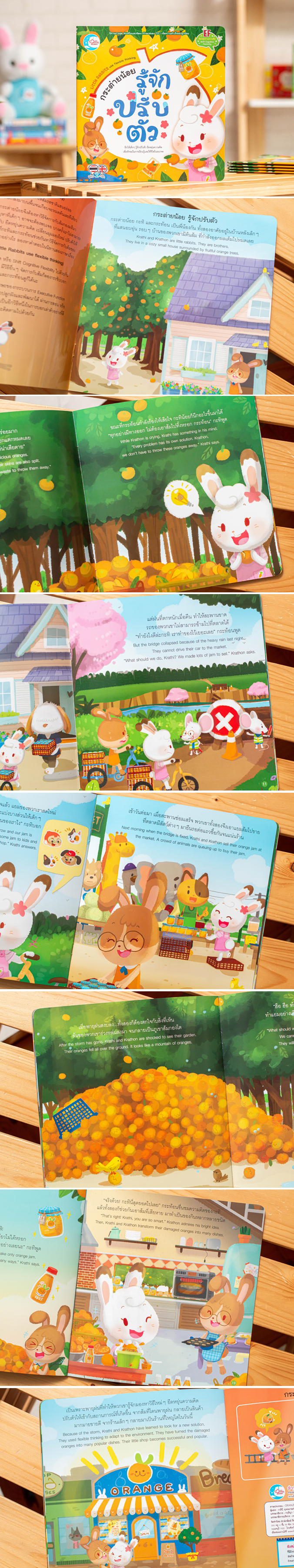 นิทานภาพแสนสนุกของกระต่ายน้อย ที่จะทำให้เด็กๆ ได้เรียนรู้และเข้าใจ ทักษะการยืดหยุ่นความคิด (Shift Cognitive Flexibility) ซึ่งเป็นทักษะอย่างหนึ่งของ Executive Function(EF) คือ การฝึกให้เด็กๆ รู้จักยอมรับ และเข้าใจกับสถานการณ์ที่เกิดขึ้น ว่าในบางครั้งก็ไม่อาจเป็นไปอย่างที่คิด จึงต้องรู้จักปรับตัว ปรับเปลี่ยนมุมมอง และสามารถที่จะยืดหยุ่นความคิดให้เข้ากับสถานการณ์ปัจจุบันที่เกิดขึ้นได้ เด็ก ๆ จะได้เรียนรู้อย่างสนุกผ่านตัวละครที่สดใสน่ารักชวนให้น่าอ่าน เหมาะสำหรับให้คุณแม่คุณพ่ออ่านให้ฟังอย่างสนุกสนานด้วยกันในทุกๆวัน
