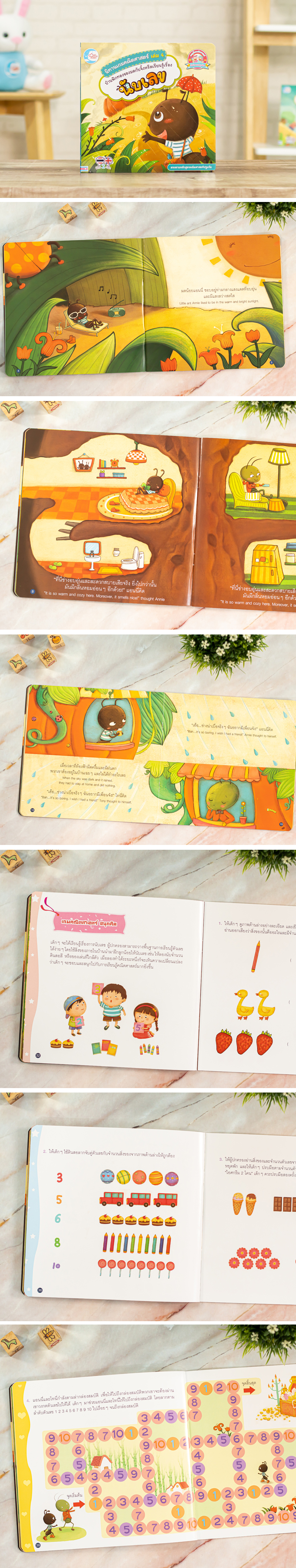 เช่น การนับตามลำดับตั้งแต่ 1 – 10 หรือมากกว่านั้น เด็กๆ สามารถฝึกนับเลขตามรูปภาพหรือของสิ่งของได้โดยง่าย เด็ก ๆ จะได้เรียนรู้อย่างสนุกผ่านตัวละครที่สดใสน่ารักชวนให้น่าอ่าน เหมาะสำหรับให้คุณแม่คุณพ่ออ่านให้ฟังอย่างสนุกสนานด้วยกันในทุกๆวัน