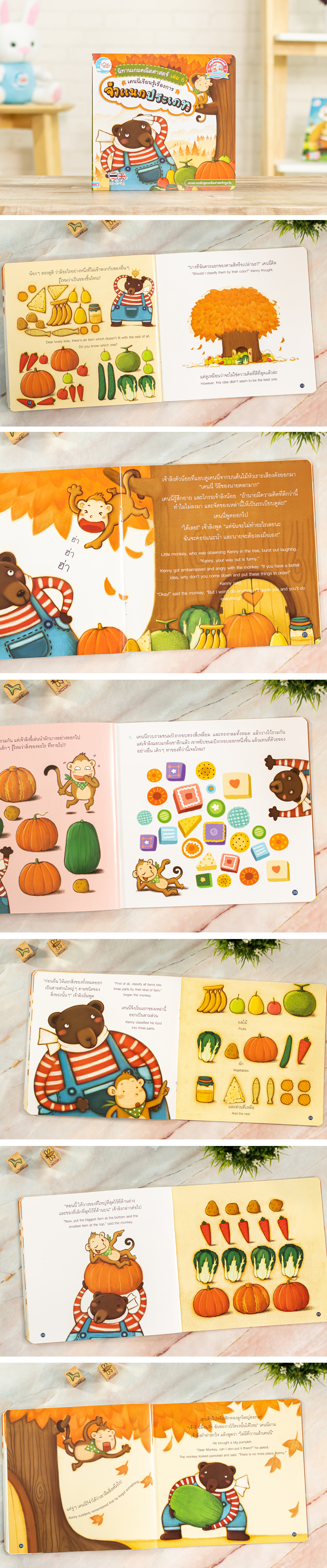 2. เป็นนิทานสองภาษา ไทย- อังกฤษ เป็นคำศัพท์พื้นฐานที่เข้าใจง่าย เด็กๆได้เรียนรู้ภาษาอย่างมีความสุข