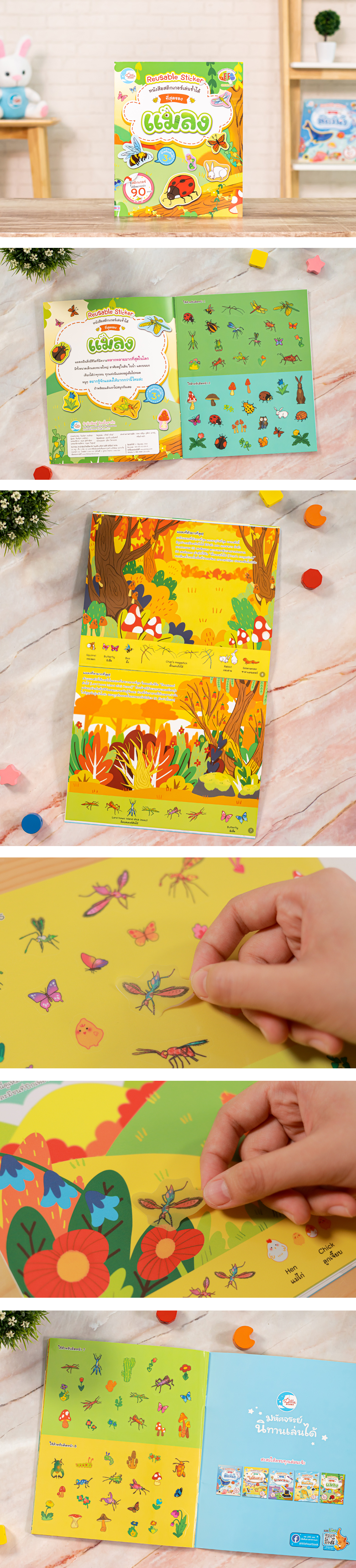 หนังสือสติกเกอร์เล่นซ้ำได้ ชุด ที่สุดของแมลง ตัวสติกเกอร์เมื่อแปะแล้วสามารถแกะออกมาแปะได้ใหม่อีกเรื่อยๆ เสริมสร้างจินตนาการได้ไม่รู้จบ นอกจากนี้เด็กๆ จะได้รู้จักกับโลกของแมลง สิ่งมีชีวิตที่มีความหลากหลาย และน่าค้นหาที่สุด พร้อมทั้งได้เรียนรู้คำศัพท์ภาษาอังกฤษของสัตว์ตัวนั้นๆ