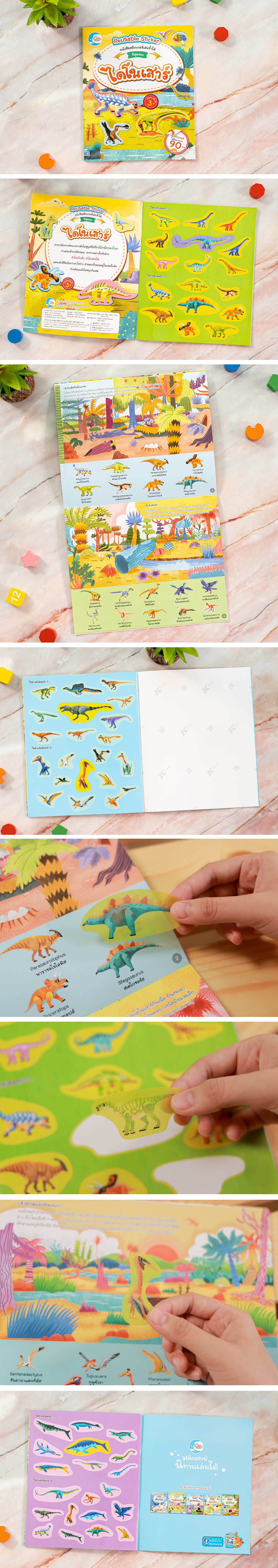 หนังสือสติกเกอร์เล่นซ้ำได้ ชุด ที่สุดของไดโนเสาร์ ตัวสติกเกอร์เมื่อแปะแล้วสามารถแกะออกมาแปะได้ใหม่อีกเรื่อยๆ เสริมสร้างจินตนาการได้ไม่รู้จบ นอกจากนี้เด็กๆ จะได้รู้จักกับโลกของไดโนเสาร์ สิ่งมีชีวิตขนาดใหญ่ที่เคยอาศัยอยู่บนโลกใบนี้เมื่อหลายล้านปีที่แล้ว พร้อมทั้งได้เรียนรู้คำศัพท์ภาษาอังกฤษของสัตว์ตัวนั้นๆ