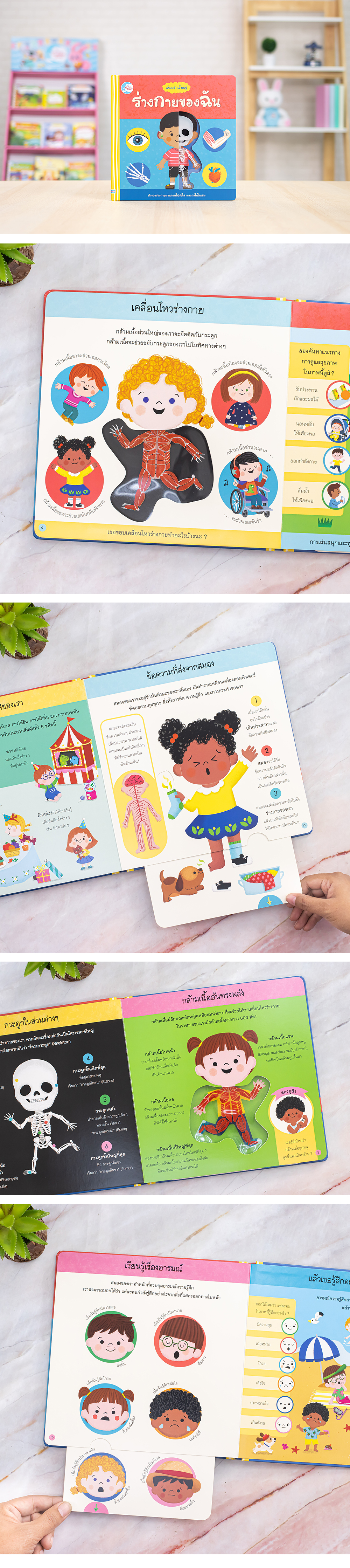 หนังสือบอร์ดบุ๊ค เล่าเรื่องราวของอวัยวะต่างๆ ภายในร่างกาย พร้อมทั้งแผ่นใสมองทะลุได้ให้เห็นอวัยวะที่ซ้อนทับกัน สนุกและได้ความรู้