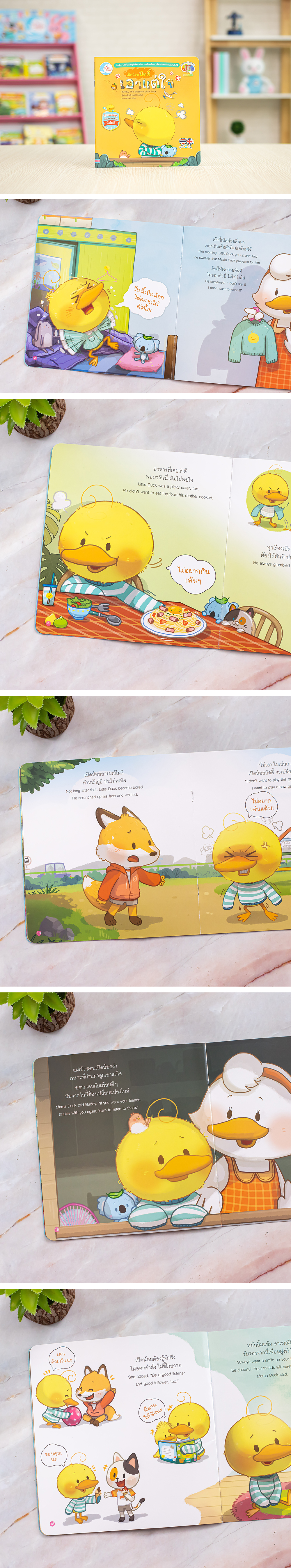 นิทานภาพสุดน่ารักของเจ้าเป็ดน้อย ที่จะทำให้เด็กๆ ได้เรียนรู้และเข้าใจ พฤติกรรมหรือลักษณะนิสัยที่ดี ซึ่งเป็นพัฒนาการของสมองส่วนหน้า Executive Function หรือ EF ที่สามารถฝึกและส่งเสริมให้กับลูกน้อยได้เข้าใจ และจัดการกับอารมณ์ของตัวเอง สามารถปรับตัวให้อยู่ร่วมกันกับเพื่อนๆ ด้วยความรัก ความอบอุ่น ได้อย่างไม่ยากเลย เด็กๆ จะได้เรียนรู้อย่างสนุกผ่านตัวละครที่สดใสน่ารักชวนให้น่าอ่าน เหมาะสำหรับให้คุณแม่คุณพ่ออ่านให้ฟังอย่างสนุกสนานด้วยกันในทุกๆ วัน