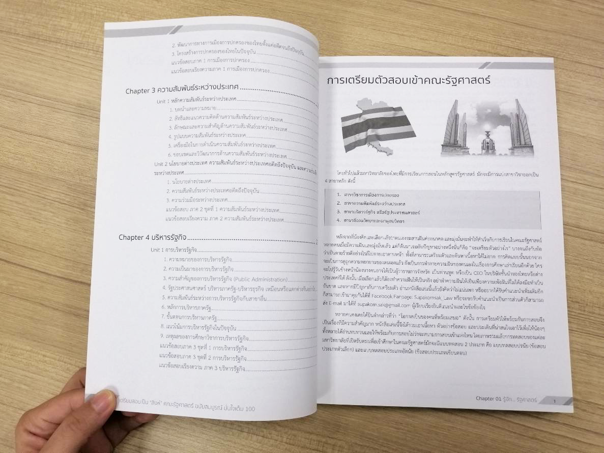 ที่รวบรวมเนื้อหาการสอบตรงเข้าในคณะรัฐศาสตร์ จากทุกสถาบันอุดมศึกษาชื่อดัง เน้นการสอดแทรกความรู้และความทันสมัยต่อเหตุการณ์ปัจจุบัน เพื่อให้รอบรู้ข่าวสารอันครบถ้วน พร้อมแนวข้อสอบปรนัยทั้ง 3 ภาค (การเมืองการปกครอง การระหว่างประเทศและบริหารรัฐกิจ)