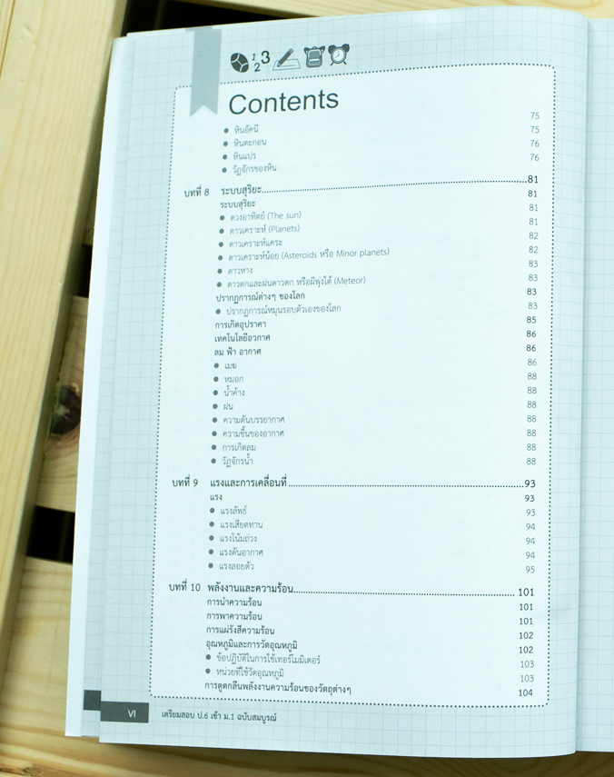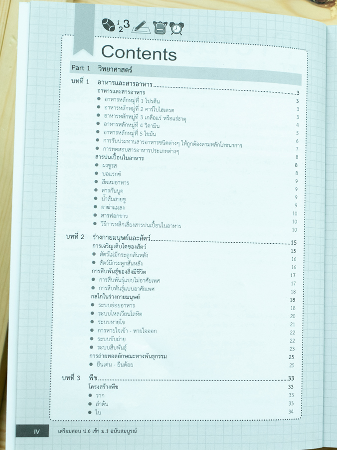 เล่มนี้ได้รวบรวมวิชาหลักทั้ง 5 วิชาได้แก่ วิทยาศาสตร์, คณิตศาสตร์, ภาษาอังกฤษ, ภาษาไทย และสังคมศาสตร์ โดยมีเนื้อหาครอบคลุมตั้งแต่ ป.1-ป.6 พร้อมข้อสอบท้ายบทเพื่อทดสอบความเข้าใจ และแนวข้อสอบเข้า ม.1 ทั่วประเทศ