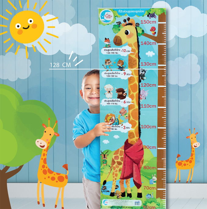 1. แผ่นภาพใช้วัดส่วนสูง ตามมาตรฐานส่วนสูงเฉลี่ยเด็กไทย ช่วงอายุตั้งแต่ 3 - 12 ขวบ