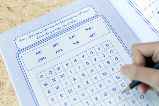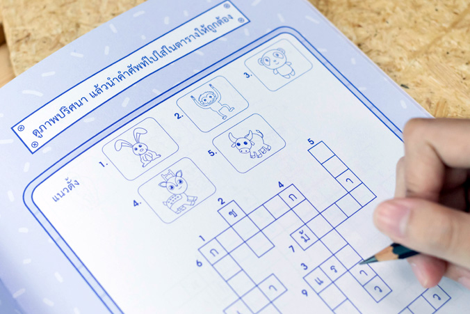 ตัวอักษรหรรษา และปริศนาอักษรไขว้ เป็นหนังสือที่ใช้สำหรับฝึกทักษะการคิด ให้เด็กสามารถสังเกตรายละเอียดการเปรียบเทียบ การจำแนก โดยใช้ตัวอักษรสื่อให้เด็กเห็นเป็นรูปธรรมผ่านเกมหรือแบบฝึก